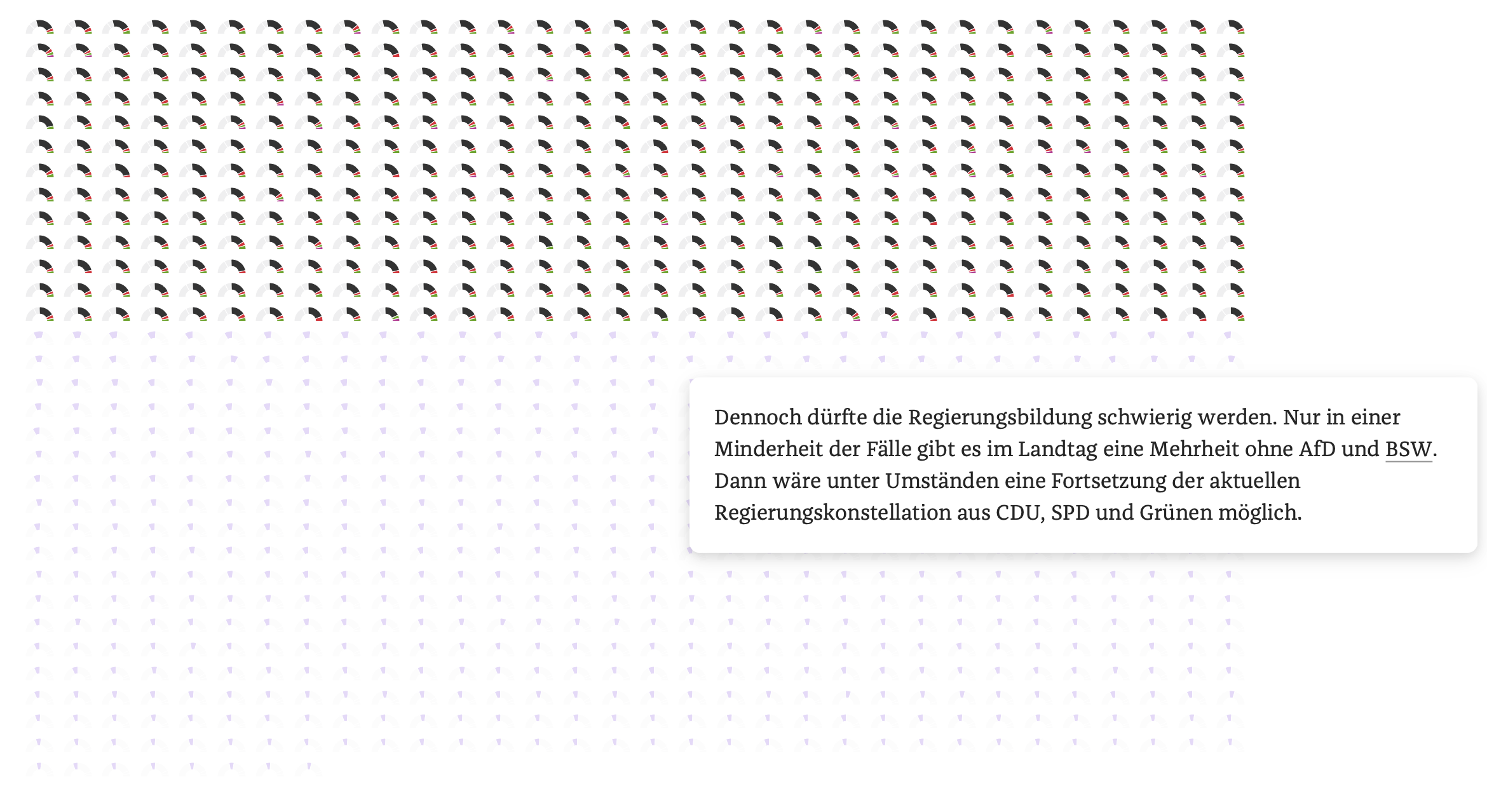 Auf Basis der Umfragen simulieren wir mögliche Wahlausgänge und Koalitionsoptionen in Sachsen und Thüringen.